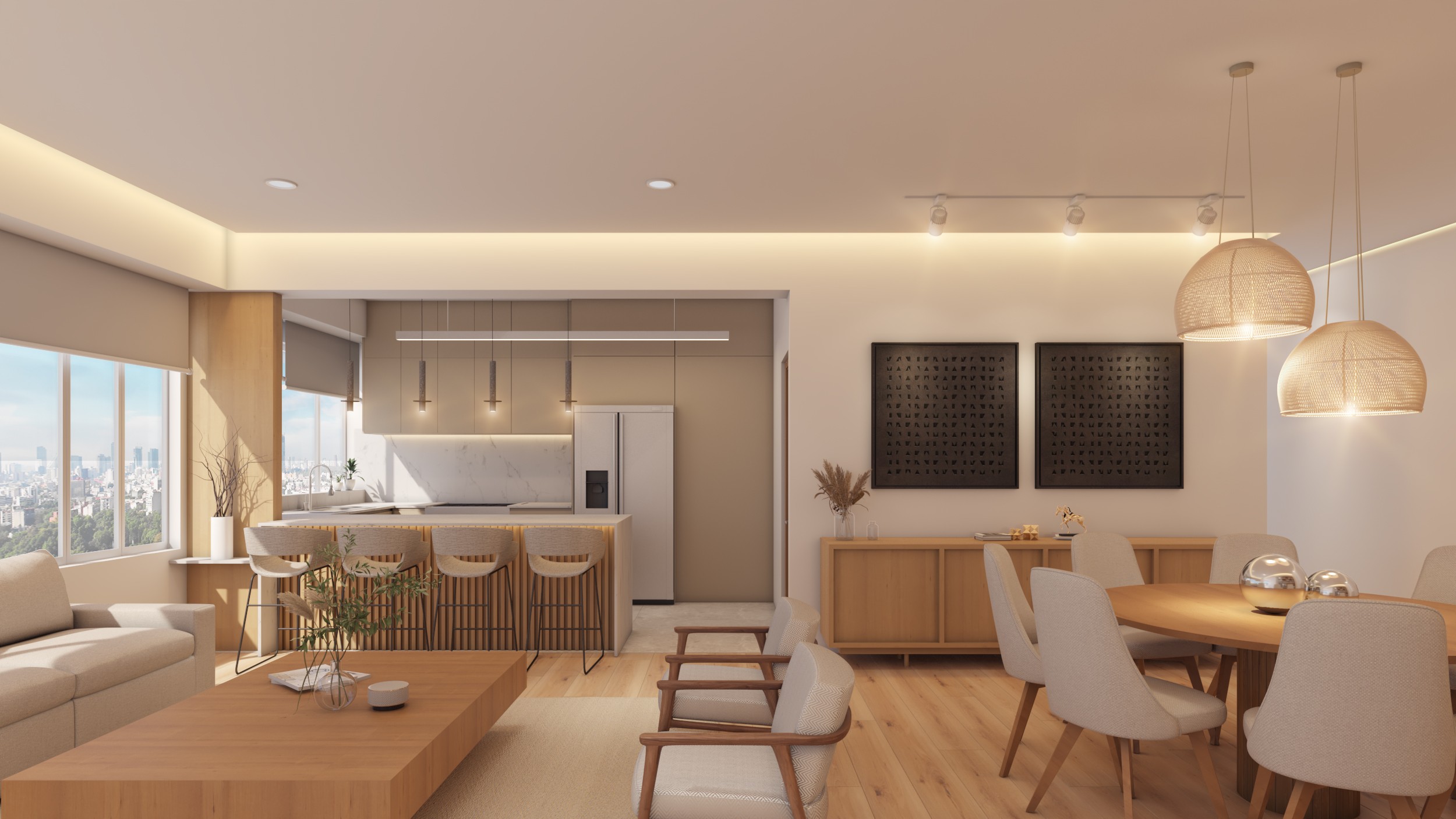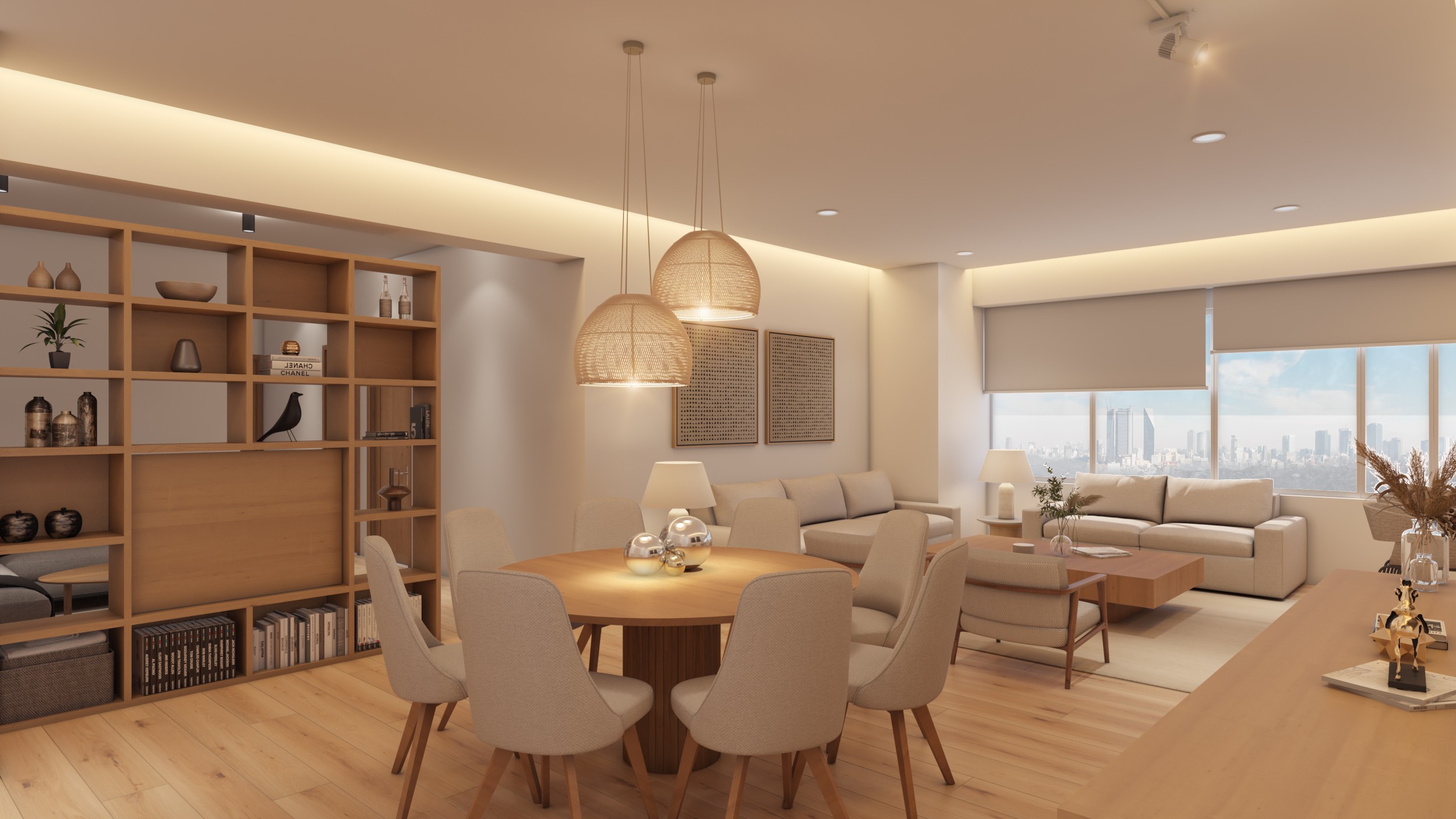 Desarrollamos un proyecto integral de interiorismo para un departamento ubicado en Punta Poniente 127, desde la conceptualización hasta la ejecución de la obra. La propuesta respondió a las necesidades del cliente, combinando estética, funcionalidad y bienestar. Definimos materiales, mobiliario e iluminación, elaborando la documentación necesaria y acompañando la ejecución para asegurar una obra bien coordinada y cuidada en cada detalle.