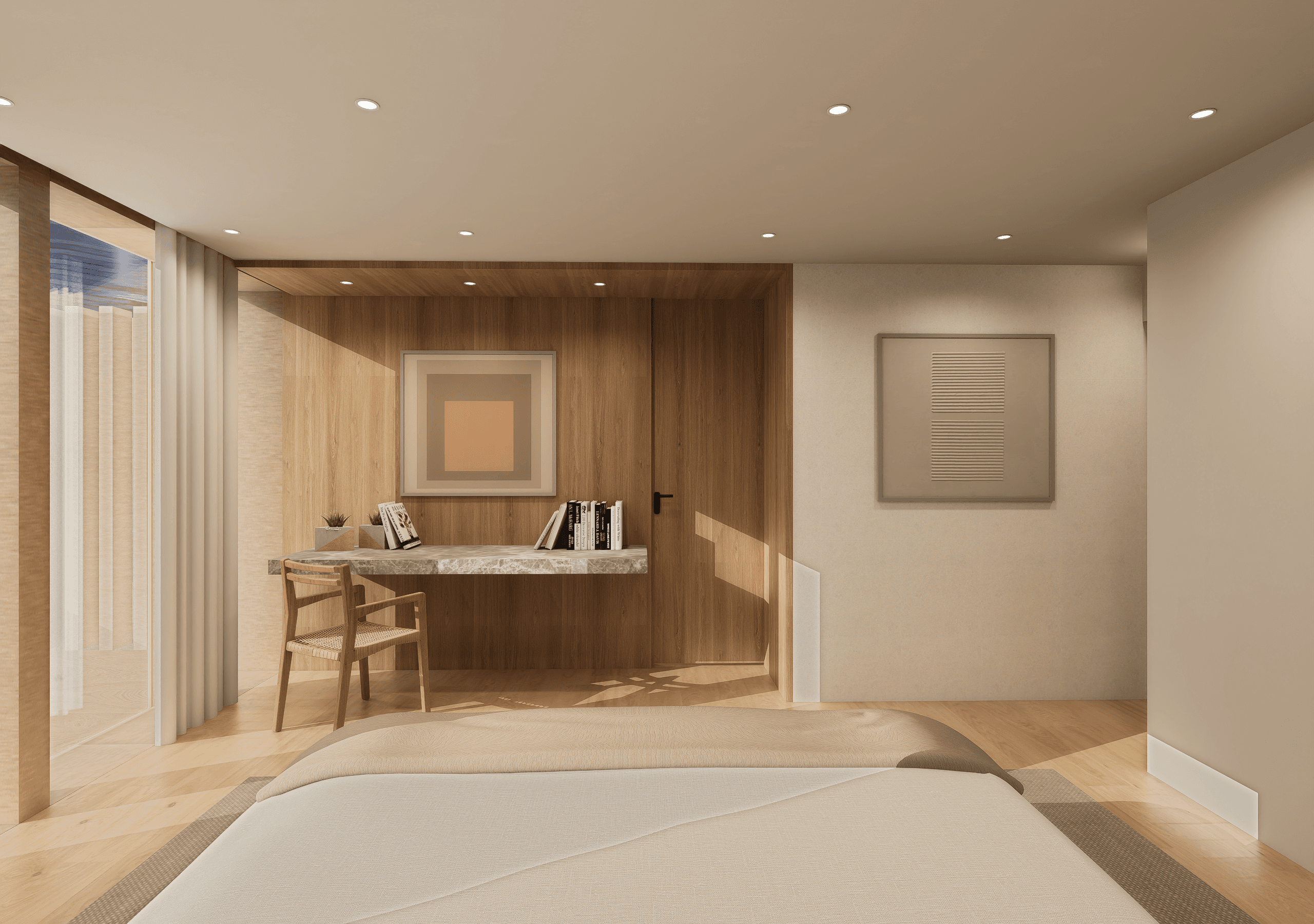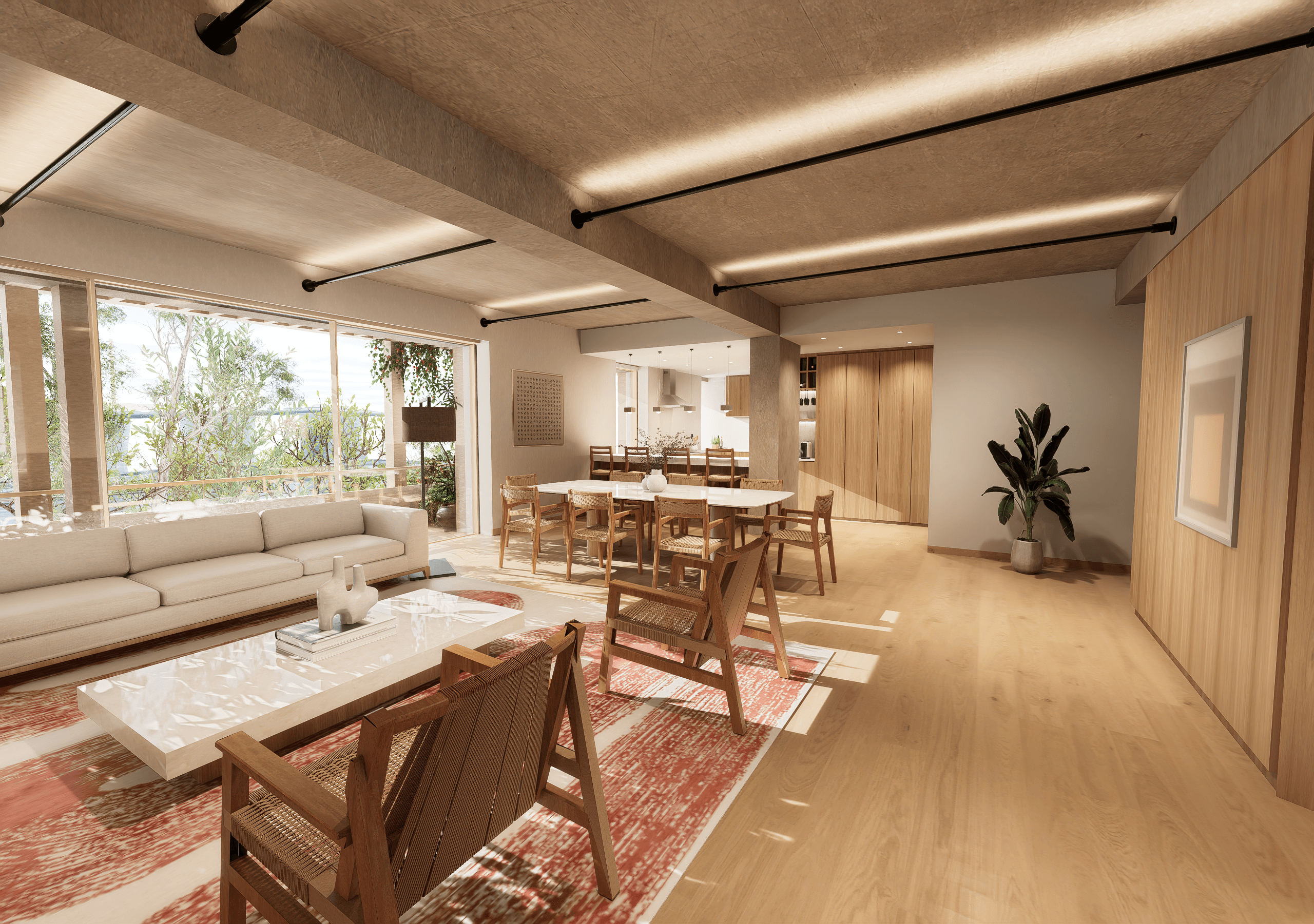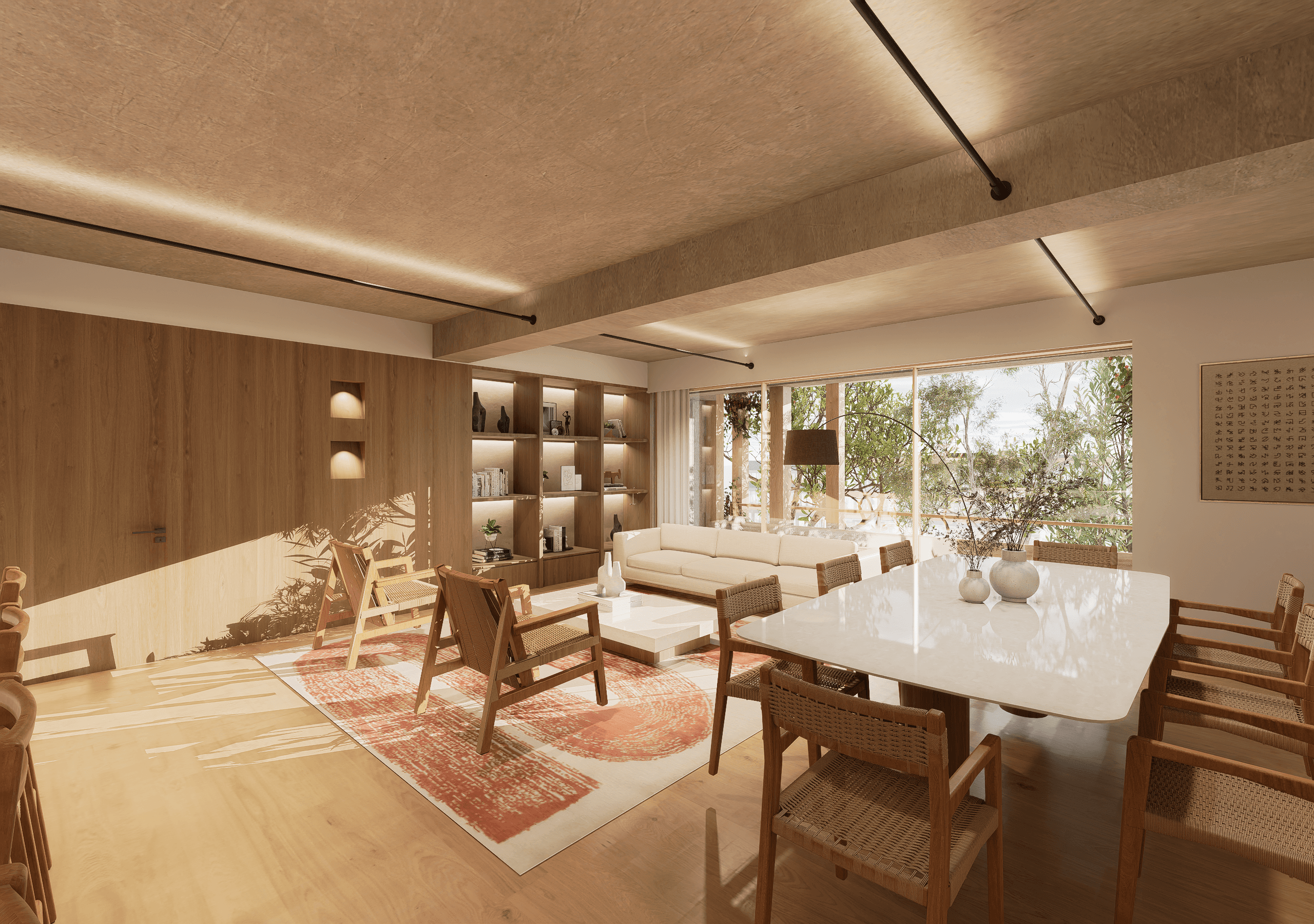 Nos encargamos del desarrollo del interiorismo para dos departamentos ubicado en Tres Picos, Polanco, desde la conceptualización hasta la ejecución de la obra. El diseño parte de la intención de mostrar, en algún lugar del departamento, el concreto aparente de la estructura, que nos enamoró desde el principio. Los acabados y las intenciones formales se definieron a raíz de permitir un flujo cómodo y abierto durante todo el recorrido del interior. Definimos materiales, mobiliario e iluminación, elaborando la documentación necesaria y acompañando la ejecución para asegurar una obra bien coordinada y cuidada en cada detalle.